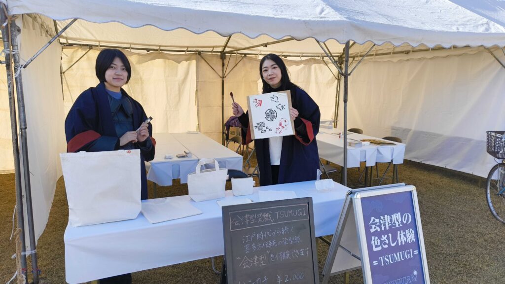 2025年11月に会津若松の鶴ヶ城で行った会津型のワークショップに運営スタッフとして参加しました。普段は基本テレワークということもあり、消費者の方と触れ合う機会がないためとても新鮮でした。ワークショップには子供から大人まで幅広い層の方にご来場いただきましたが、通りすがりで興味を持っていただいた方だけでなく、TSUMUGIの店舗に一度来ていただいた方や、SNSの投稿を見てわざわざご来場いただいた方もおり、とても嬉しく思いました。アップサイクルや伝統工芸に関心のある層はそこまで多くはないかもしれませんが、一度ファンになっていただければ深い関係性を築くことができる方々なのではないかと感じています。またお客さんの喜ぶ顔を見ることができるというのはその後の業務のモチベーションにも大きく繋がりました。